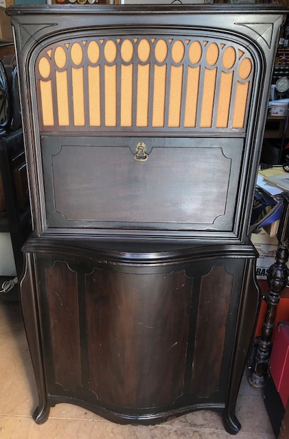 When I obtained the set, it was in decent condition. I had to make some minor repairs to the cabinet, and the grille cloth needed to be replaced which was a major task, having to take the radio almost completely apart to get to it.